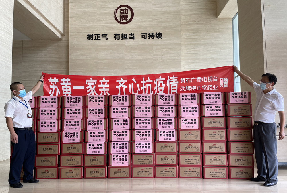 疫情牽動人心,支援迫在眉睫。8月4日,勁牌持正堂藥業聯合黃石廣播電視臺向江蘇廣電系統(江蘇省及南京、揚州等電視臺)定向捐贈金銀花藿香人參茶、藿香紫蘇飲兩款防疫茶飲共計70箱,總價值超12萬元。