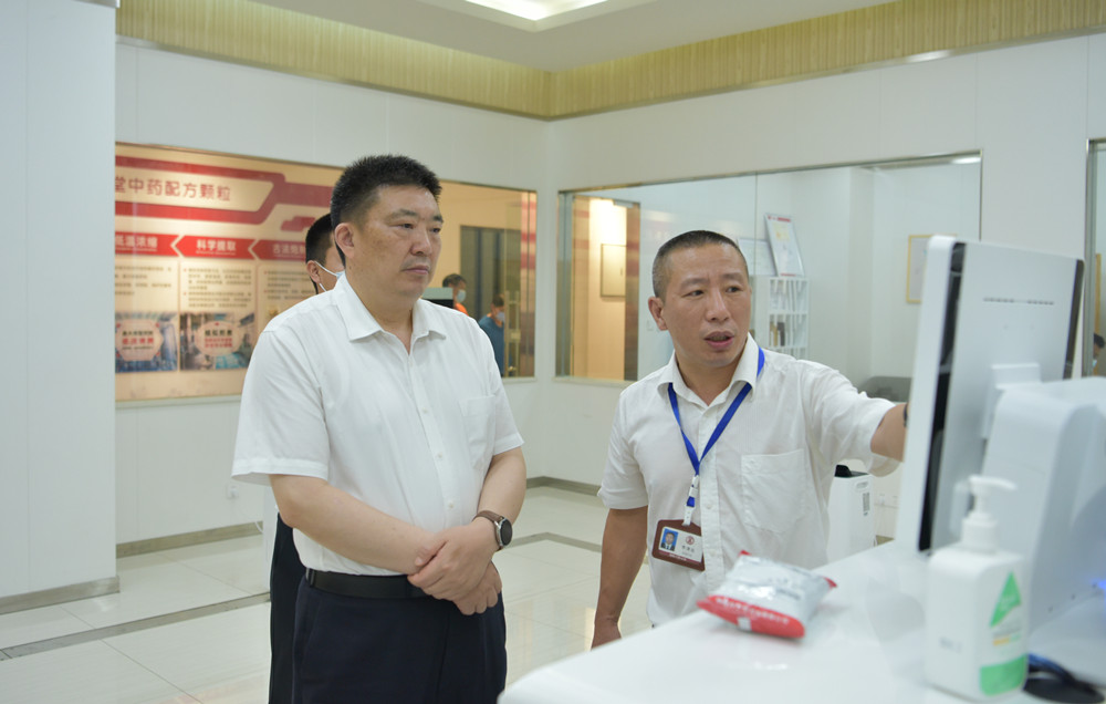 走進持正堂藥業展廳,周先旺認真聽取了持正堂藥業中藥數字提取技術、中藥指紋圖譜技術、中藥提取標準建設情況和產業發展規劃等方面的介紹。在勁牌共享智慧藥房,周先旺親身體驗了互聯網模式下,高度智能化、自動化的問診抓藥流程,并予以肯定。